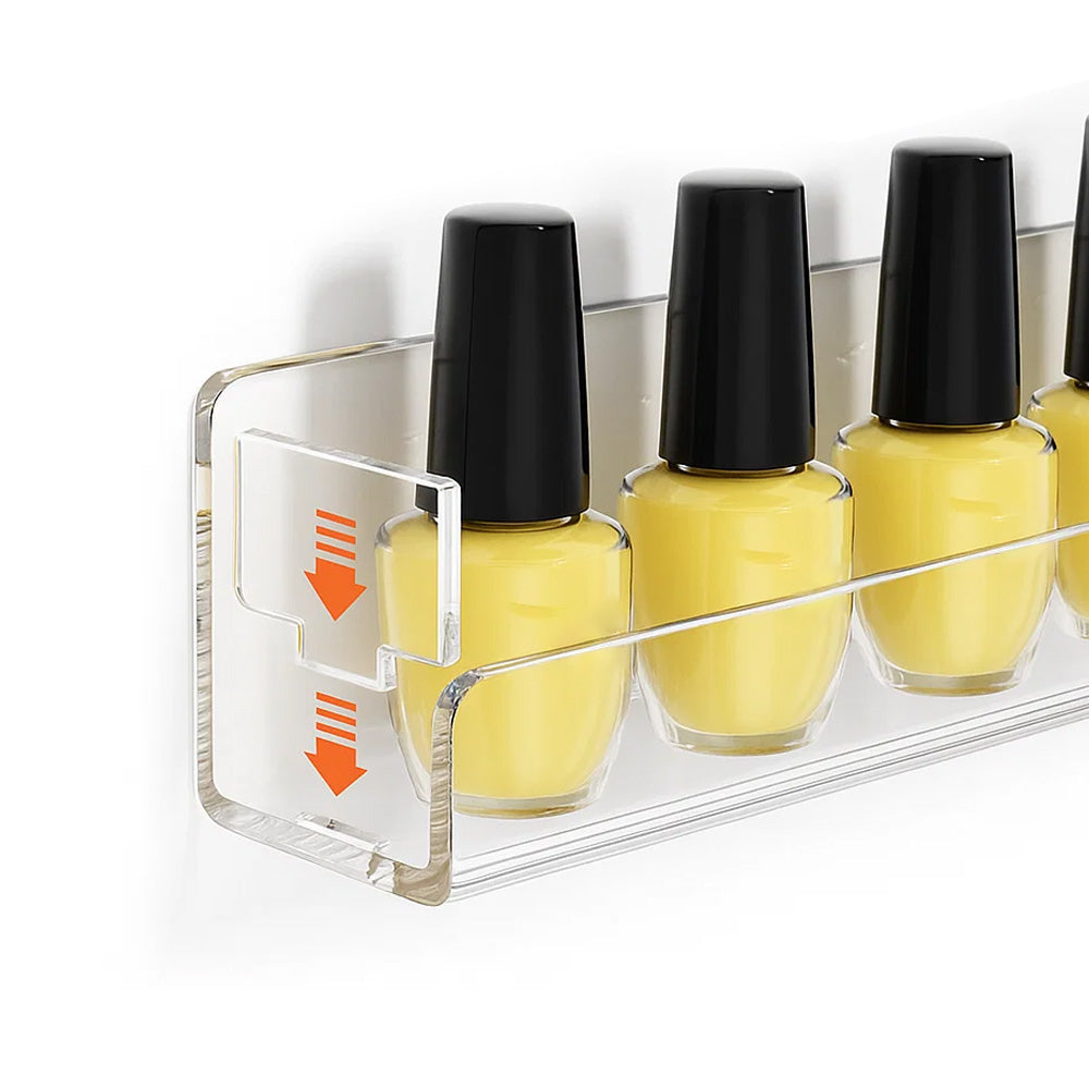 Mettez de l’ordre dans vos vernis avec cette étagère murale transparente en acrylique. Pensée pour les professionnelles de la beauté comme pour les passionnées à domicile, elle permet de ranger jusqu’à 15 flacons tout en gardant vos couleurs préférées à portée de main.