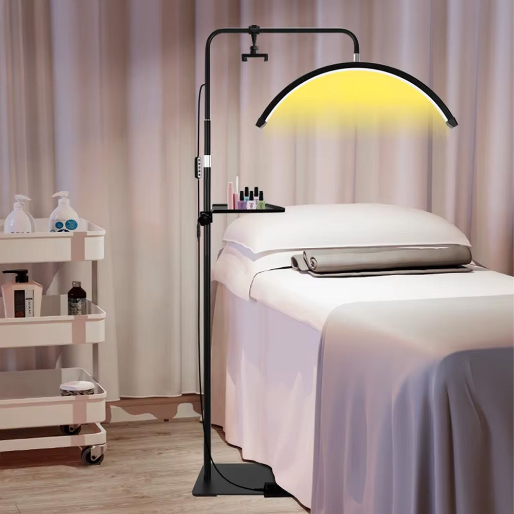 Cette lampe LED demi-lune sur pied est conçue pour offrir un éclairage professionnel et confortable dans les salons d’esthétique. Sa forme incurvée diffuse une lumière homogène qui met en valeur chaque détail, que ce soit pour la pose d’extensions de cils, le maquillage permanent ou la manucure.