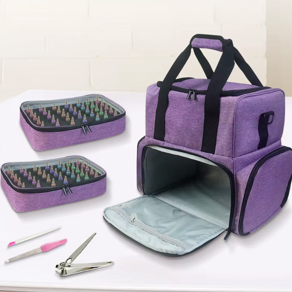 Organisez et transportez facilement vos 80 flacons de vernis grâce à cette mallette violette robuste et pleine de style.