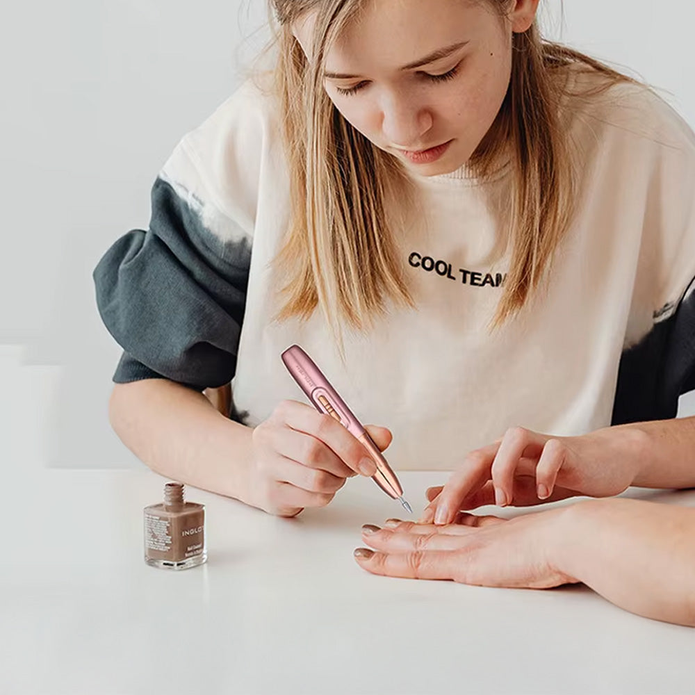Idéale pour les styliste ongulaire, prothésistes ongulaires, et amateurs de beaux ongles, cette ponceuse électrique est livrée avec un kit d’embouts interchangeables incluant limes à ongles, polissoirs, et fraises en céramique.