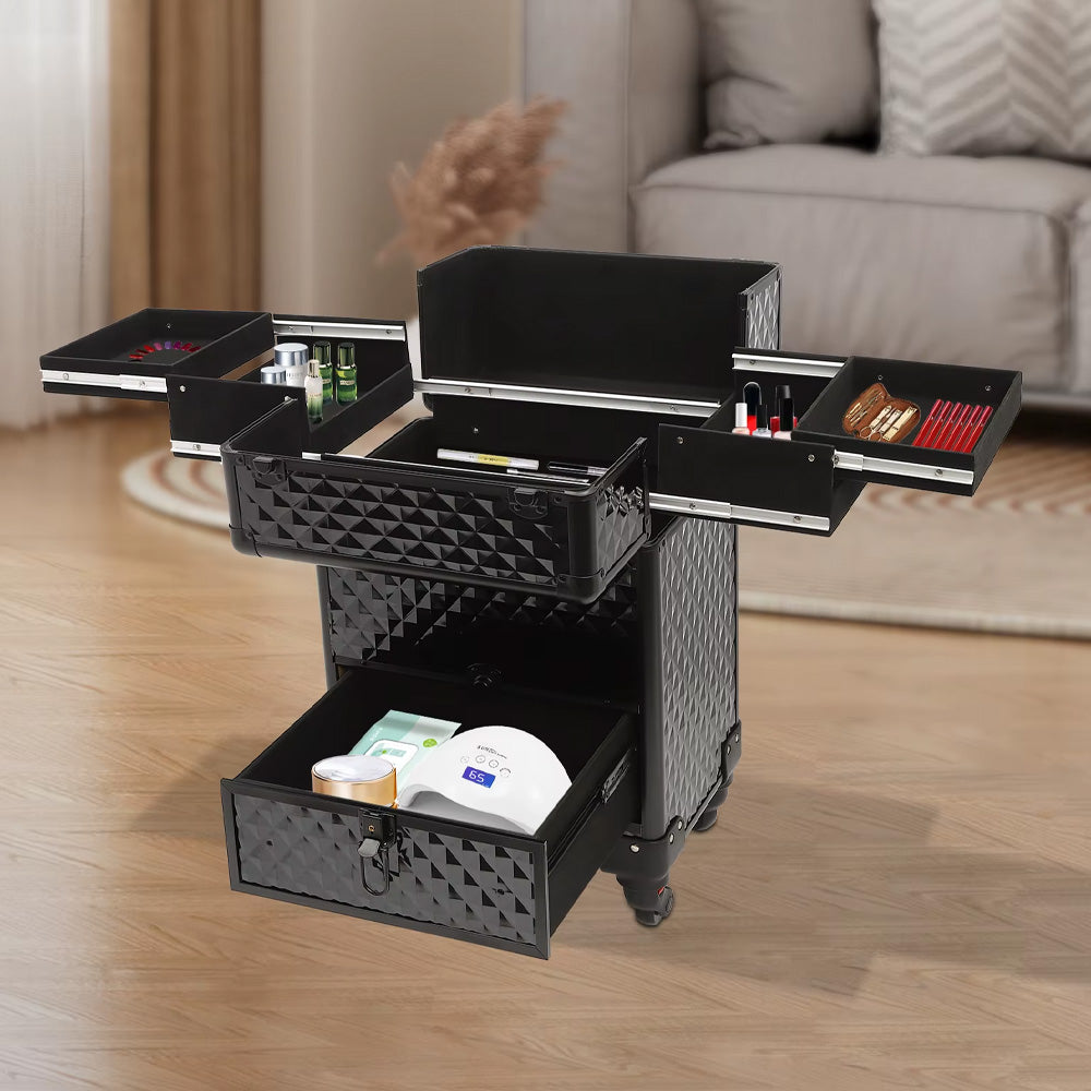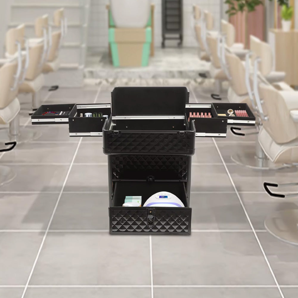Cette valise esthétique noire en aluminium est l’alliée idéale des professionnelles de la beauté mobiles.
